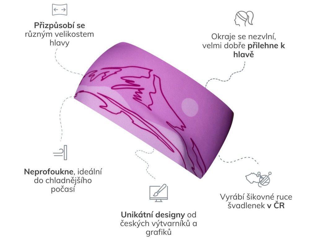 - široké čelenky jsou vyrobené z pružného materiálu a dokonale se ti přizpůsobí