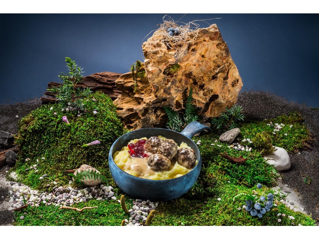 Pro tuhle severskou dobrotu, po které děti doslova šílí, už nemusíte do modro-žluté divočiny. Můžete s mrňousy divočit v přírodě s jistotou, že jim výlet zachutná. Jemně kořeněné kuličky z mletého vepřového a hovězího, smetanová omáčka, sametová kaše a navrch veselé brusinky to jistí. Tak ploutev na to, že jim je nesníte.