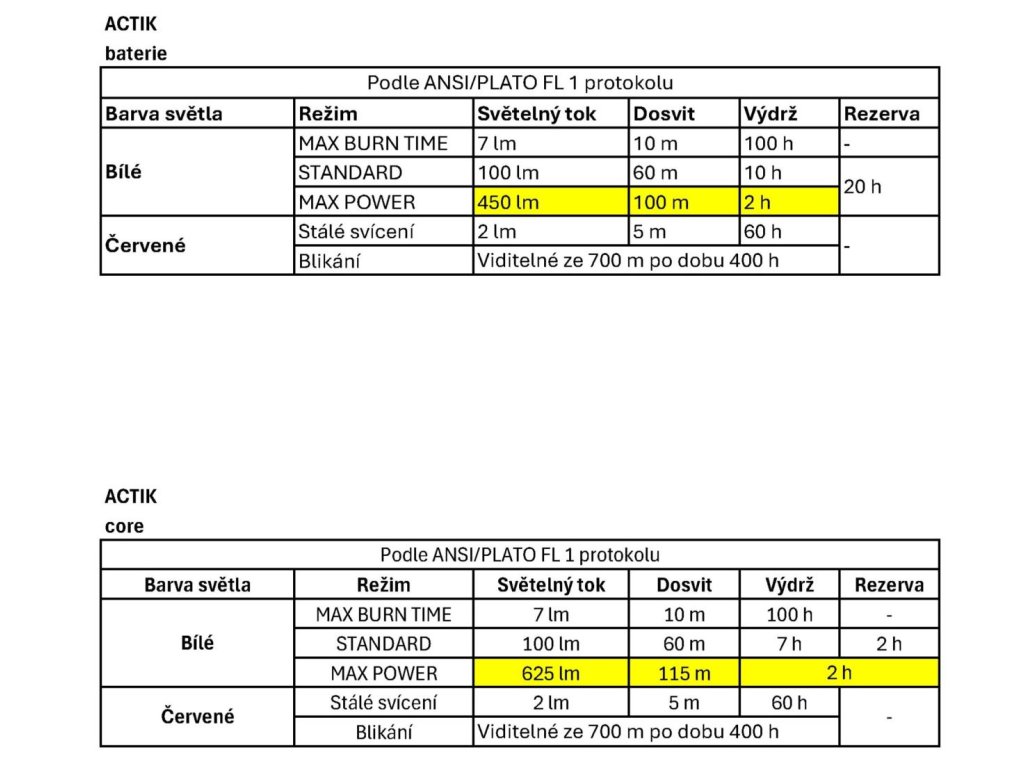 - ACTIK CORE se dodává s dobíjecím akumulátorem CORE a funguje také se třemi standardními bateriemi AAA/LR03 (nejsou součástí balení), svítilna automaticky rozpozná typ zdroje a upravuje světelný výstup
