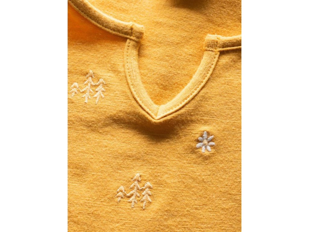 horolezeckém místě v Chorvatsku. Díky jemné směsi látek je velmi pohodlné na nošení. Triko je decentně zdobené květinovým vzorem.